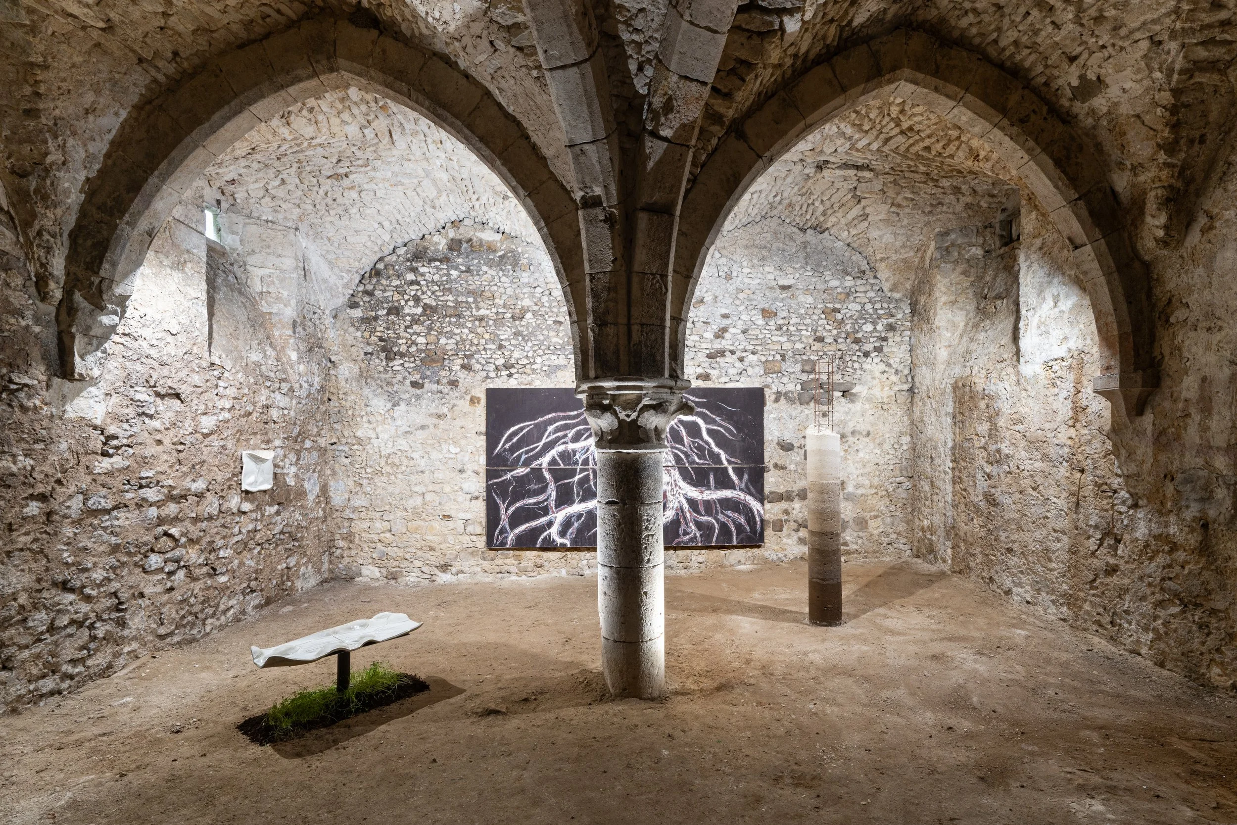 An exhibition presented at La Crypte de Grez, set within the 12th-century underground crypt of Grez-sur-Loing, a historic artistic enclave.